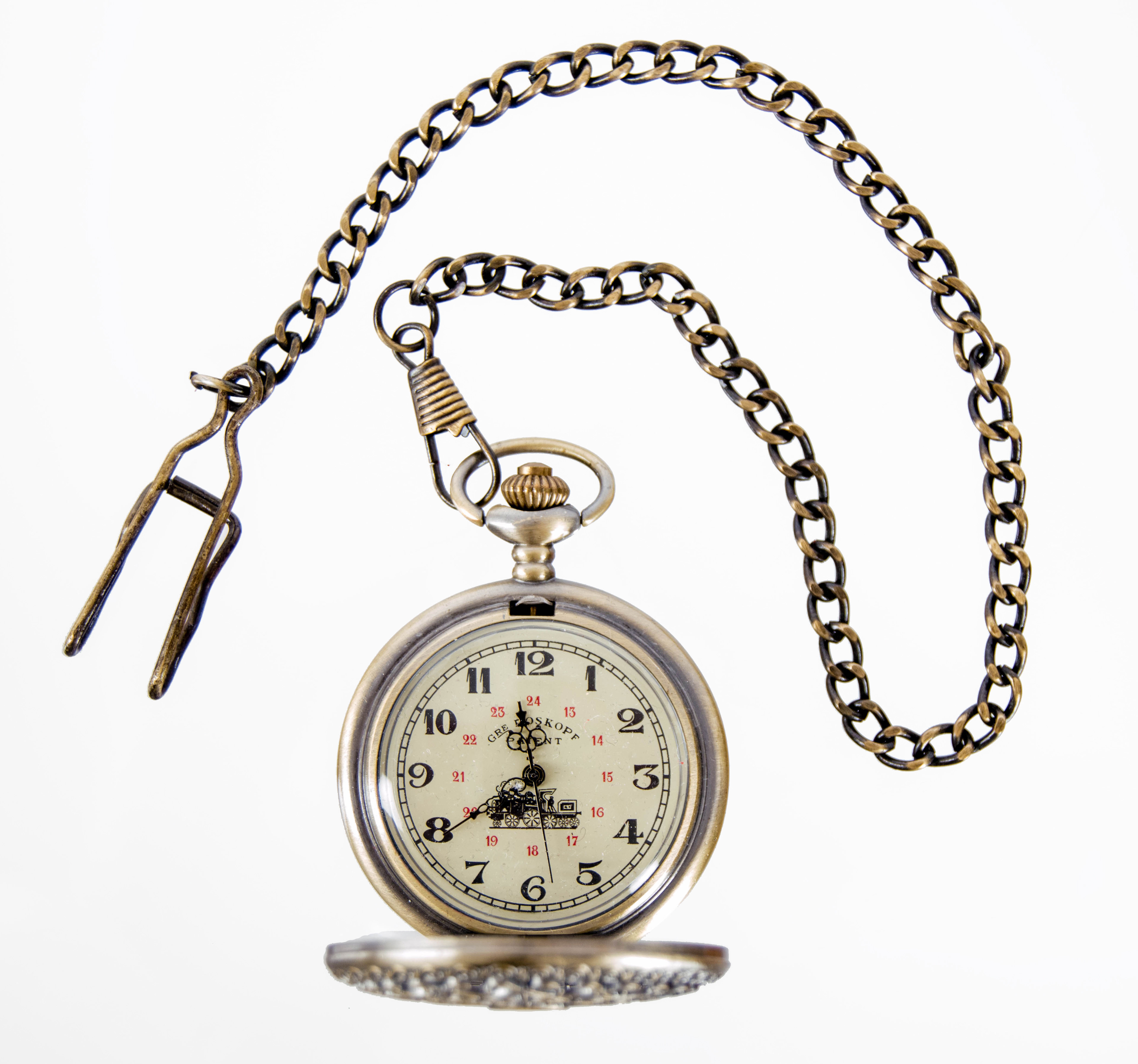 Notera att mönstret i locket på klockan varierar.